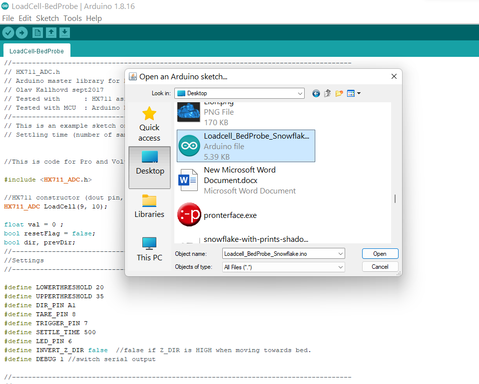 Open the Bed Levelling code: File > Open> Select the file.
