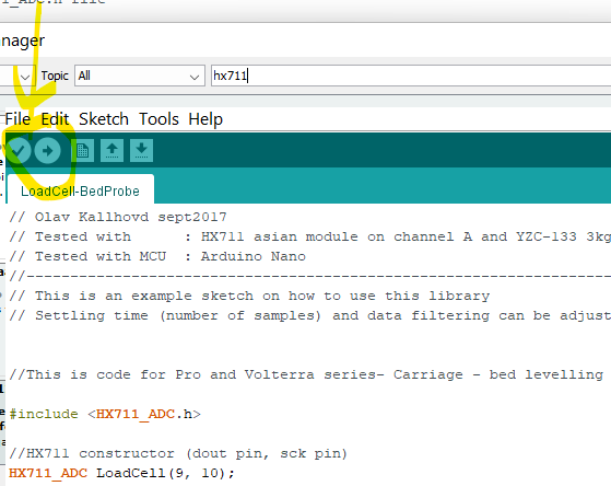 Tools> Manage Libraries> (Search) HX711_ADC.h> Click Install.