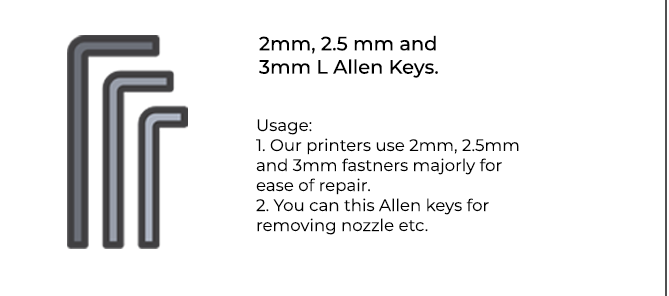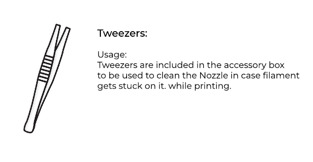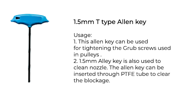 Spool holder: The Spool holder is used to mount the filament spool to the printer. Not mounting the spool on the given spool holder will lead to filament tangling and will hinder the printer’s functioning.