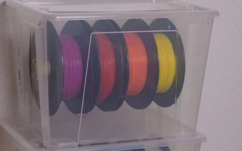 Transparent storage boxes with sealed lids present another great way to store your 3d printing filaments correctly. The idea behind the sealed lids is that no new moisture can reach the filament from outside. The need for transparency arises from a practical perspective. If you cannot see inside the boxes, you’ll never know what filament is inside which boxes.