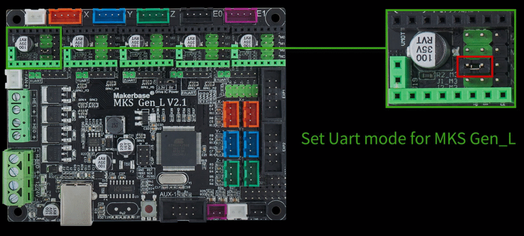 Jumpers are used to set the stepping values in MKS. If the jumper pin is faulty, it will not set the stepping units, and the machine will give issues. So it is advisable to swap the jumpers and check if you are not able to root cause the issue.