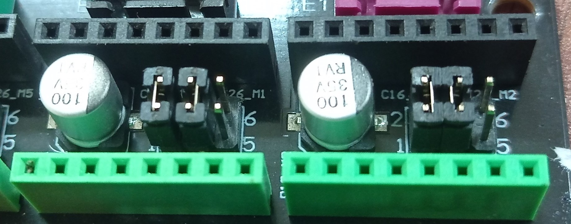 All Fracktal printers shipped with MKS 1.4 have DRV 8825 drivers. In case you have to update drivers to TMC 2209, you need to change the Jumper configuration and update the firmware.